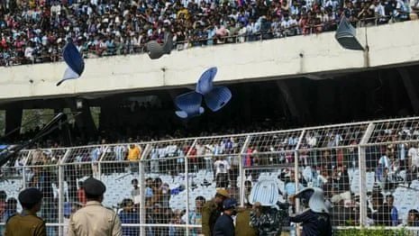 कोलकाता के विवेकानंद युवा भारती क्रीड़ांगन (साल्ट लेक स्टेडियम) में 13 दिसंबर को अर्जेंटीना के दिग्गज फुटबॉलर लियोनेल मेसी के ‘GOAT इंडिया टूर 2025’ के पहले चरण में भारी अव्यवस्था और अराजकता देखने को मिली। मेसी महज 10-20 मिनट मैदान पर रहे और जल्दी चले गए, जिससे हजारों टिकट खरीदकर आए फैंस भड़क उठे। नाराज दर्शकों ने बोतलें फेंकीं, कुर्सियां तोड़ीं, बैनर फाड़े और मैदान पर घुसने की कोशिश की। स्थिति बेकाबू होने पर पुलिस को हल्का लाठीचार्ज करना पड़ा।